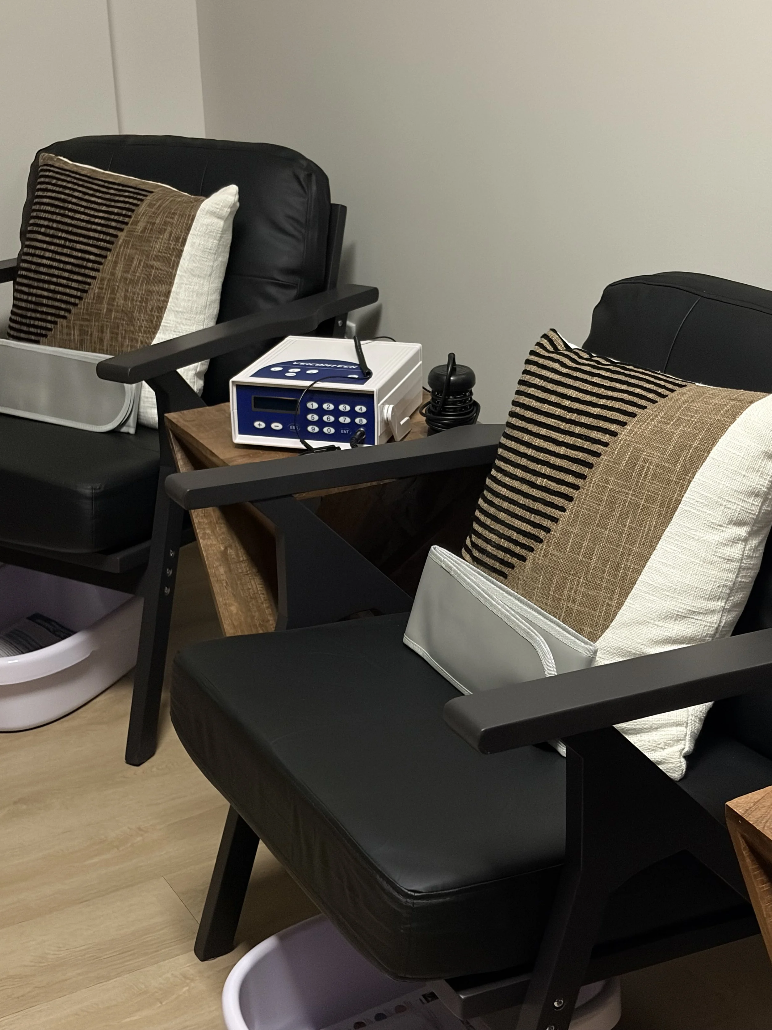 Sit comfortably with your feet soaking in warm water as gentle electrical currents create positively and negatively charged ions. This ionization supports circulation and the lymphatic system.This treatment is used to support the body’s natural detox pathways, promote relaxation, improve circulation, and encourage overall balance and wellness.